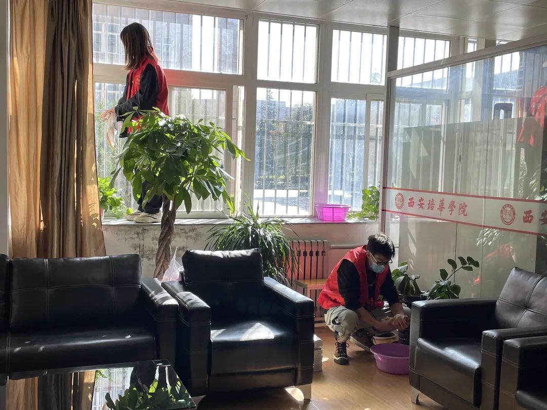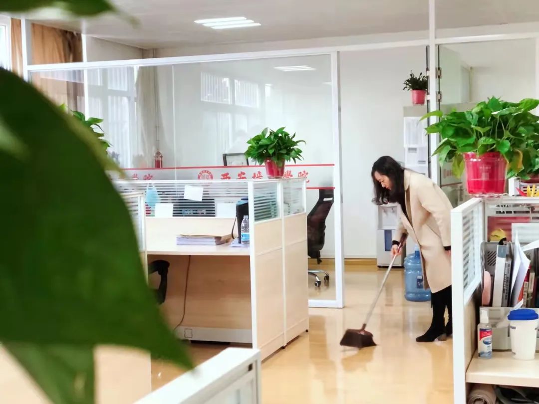 针对办公室难以清洁的卫生死角,院系的一些党员学生代表没有一个抱怨喊累。在经过师生们全方位彻底清理后,办公室桌面干净整齐,窗户玻璃清澈透明,室内无杂物,不留任何卫生死角。同时为积极配合疫情防控工作,在清扫结束后,我们还对院系办公室进行消毒喷洒,筑牢我校疫情防控常态化。