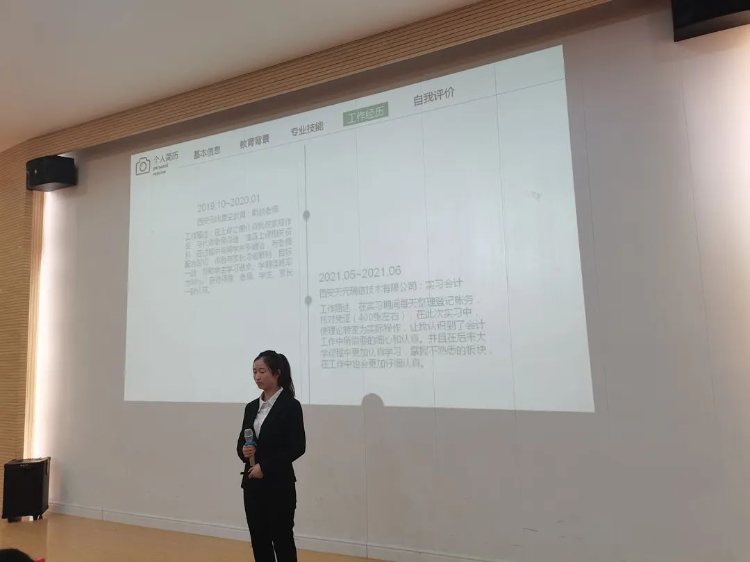 各评委老师查看初赛选手投送的简历,选手自我介绍完毕后,分别对每位参赛选手简历中所存在的问题和不足进行指导和建议。