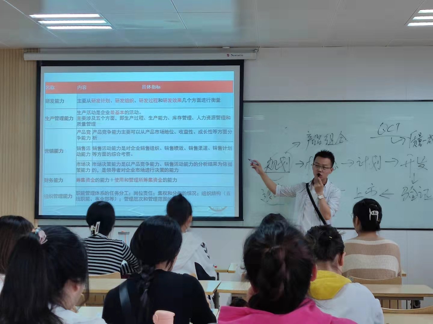 经济系的王潇教师教授《创业投资》课程,上课精神饱满,教学内容谙熟于心;注重预习复习环节,采取学生课堂汇报的方式回顾上节课学习的内容,与学生不断交流,采用案例式教学,PPT插入图片视频等可视化素材引导学生享受创业投资的乐趣。