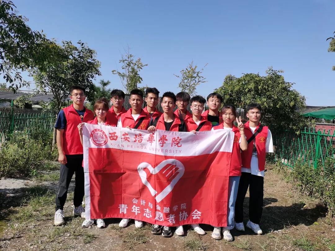 西安培华学院会计与金融学院和体育学院青年志愿者协会于2021年9月20日前往西安市长安区立元村701流浪动物爱护驿站进行宠物领养日系列活动。