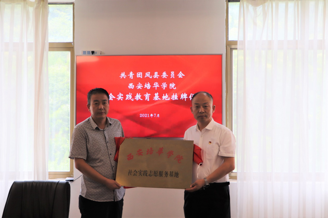 为动员和组织广大青年响应“永远跟党走、奋进新时代”的主题,进一步提高青年志愿者的奉献精神,为志愿者提供更宽广的社会实践服务平台,西安培华学院将宝鸡市共青团凤县委员会作为西安培华学院社会实践志愿服务基地,并于7月16日隆重举行揭牌仪式。