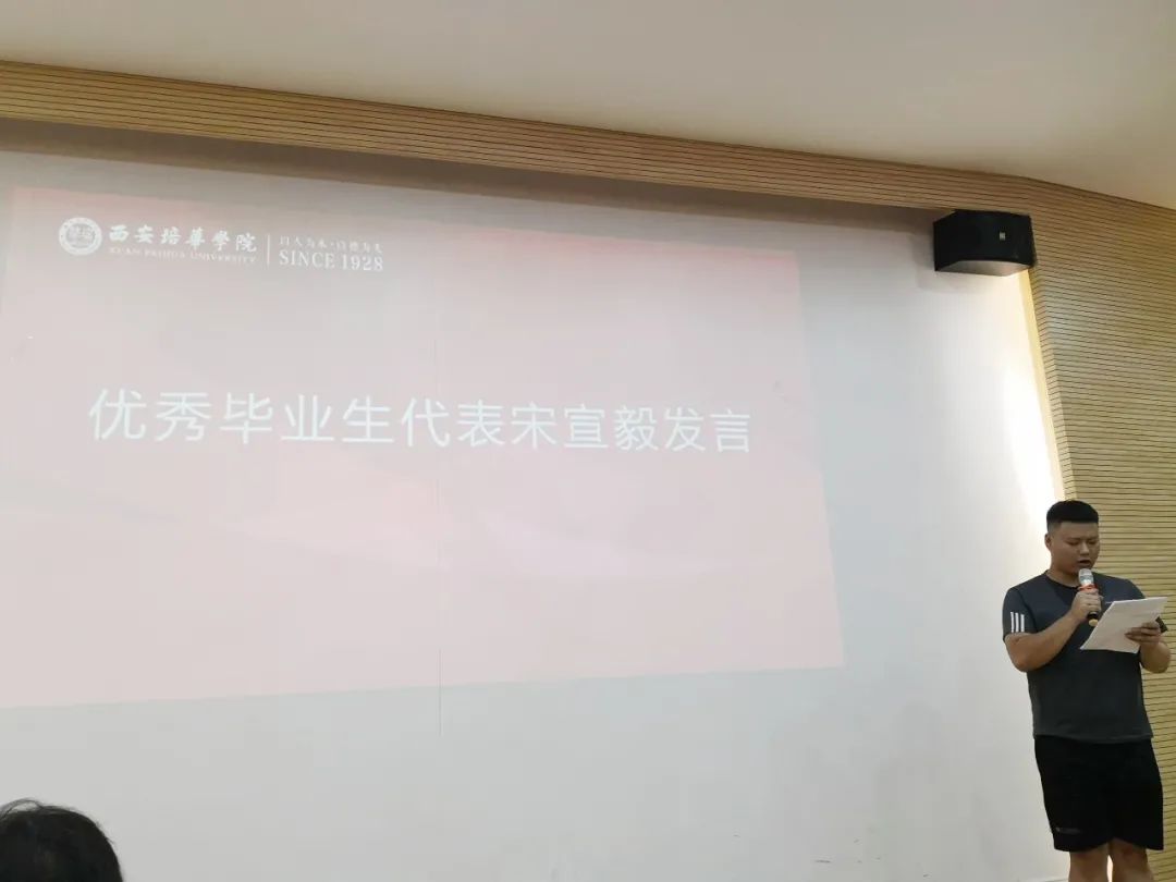 宋宣毅同学代表同学道出心声:从大一的无所作为到毕业时的坚定自信,感谢老师,我们一定会积极向上、再树华章。