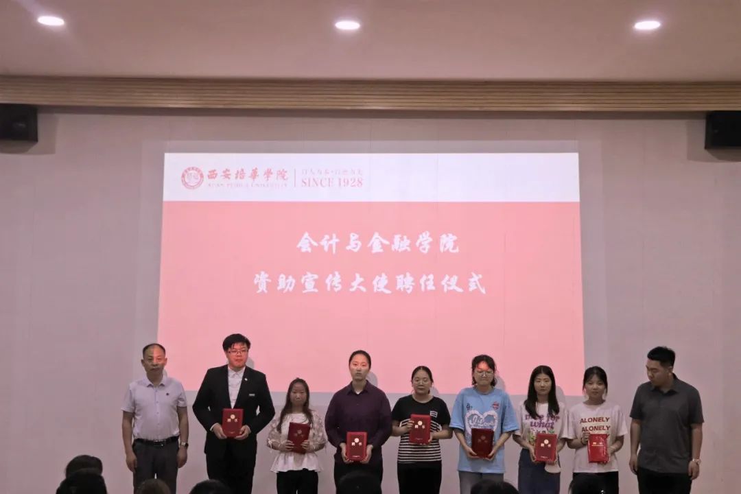 会计与金融学院资助宣传大使聘任仪式接下来,由我院党委书记兼行政副院长史立军与党委副书记韩斌为七位学生代表颁发资助宣传大使聘书。