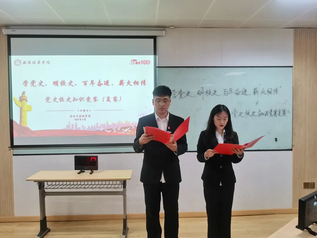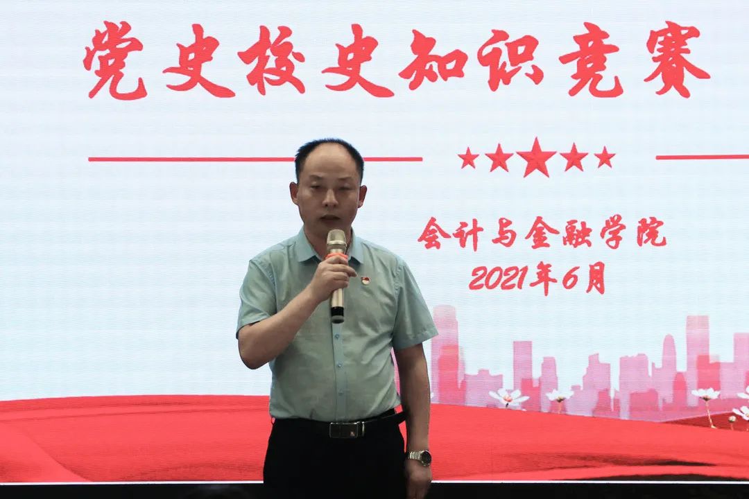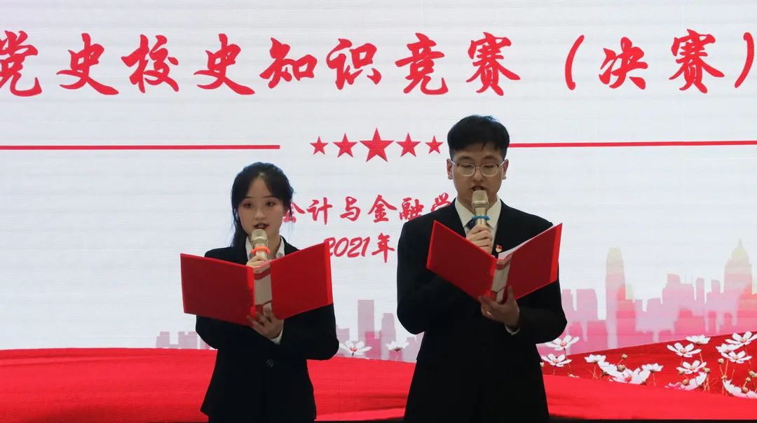 为隆重庆祝中国共产党成立100周年,重温党的光荣历史和丰功伟绩,继承和发扬党的光荣传统和优良作风,展现改革开放和社会主义现代化建设的伟大成就,进一步激发我院学生爱党爱校的热情和历史责任感,提高党性修养,同时让我院师生充分了解我校的光辉历史,增强师生爱校的荣誉感,以史为镜,展望未来。2021年6月18日会计与金融学院于汇知楼阳光厅举行“学党史、明校史、百年奋进、薪火相传”党史校史知识竞赛。