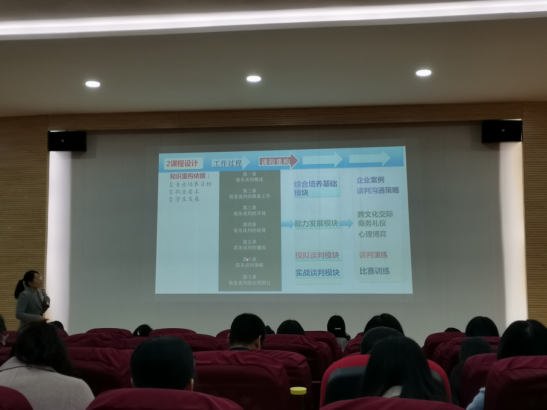 比赛在教学院长杨仕鹏宣读比赛规则中拉开序幕。杨院长指出,本次应用型特色课程比赛严格按照培华教函【2020】70号文件执行,课程单元说课时间不超过8分钟、课程体系说课时间不超过10分钟。应用型课程体系、应用型课程单元评价指标、观测点按照评价标准执行。