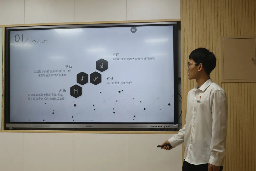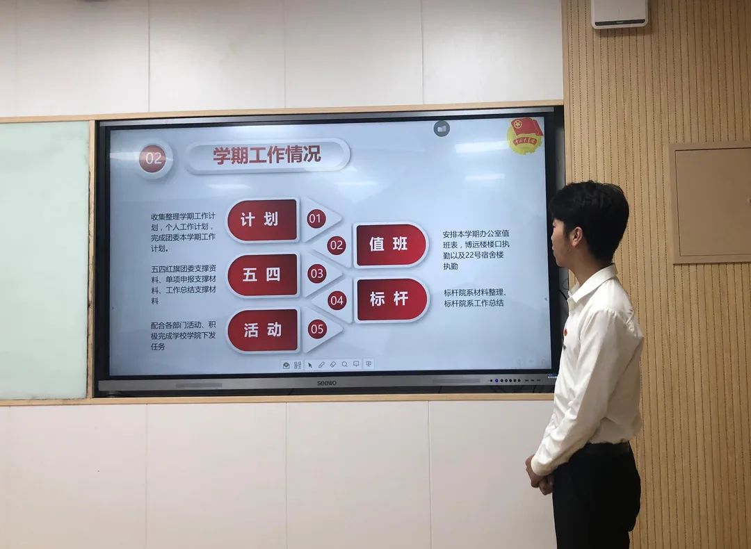 各团支书的述职环节中,展示了基础团务工作、团支部介绍、团支部特色活动以及工作经验等。回顾这一学期的工作,有欢乐,有痛苦,有泪水,有收获。但更多的,是成长!