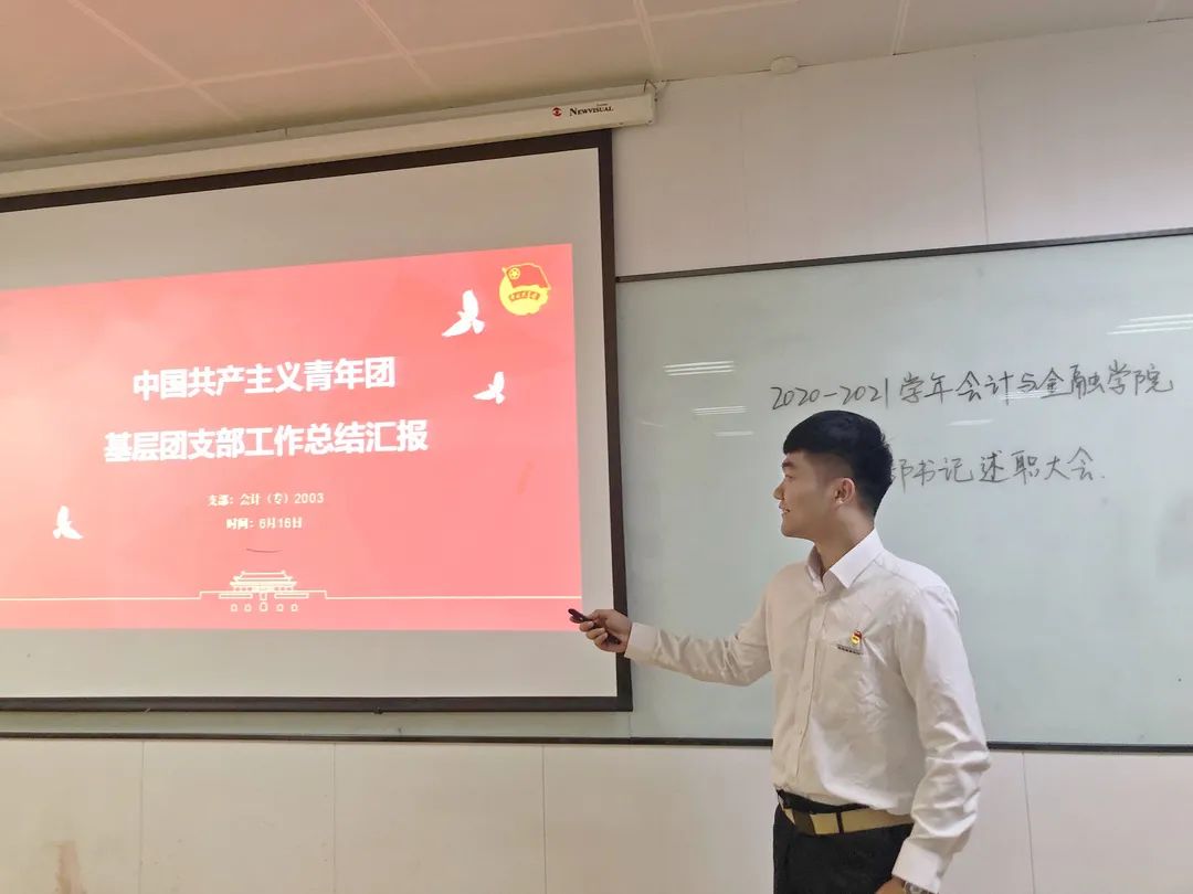 总书记指出:“人才培养一定是育人和育才相统一的过程,而育人是本。人无德不立,育人的根本在于立德。这是人才培养的辩证法。”团支部书记作为基层的团干部,在团的工作中发挥着重要作用。为激励广大团支部书记在学习先进典型中提高综合素质,发挥团支部书记先锋模范作用。为了提高我院团支书的工作能力,理解和熟悉团支部的各项工作,加强团内交流,发现团内工作中的不足,更好地进行基层共青团工作。会计与金融学院团委于2021年6月16日17:00在博远楼2616、2618举办团支部书记述职大会。