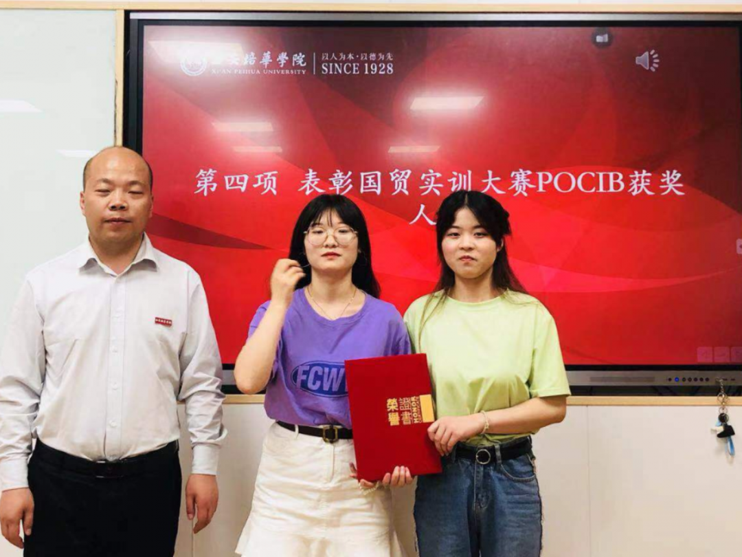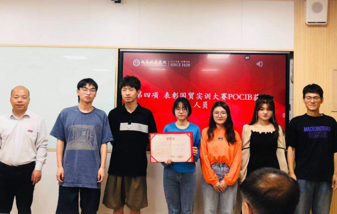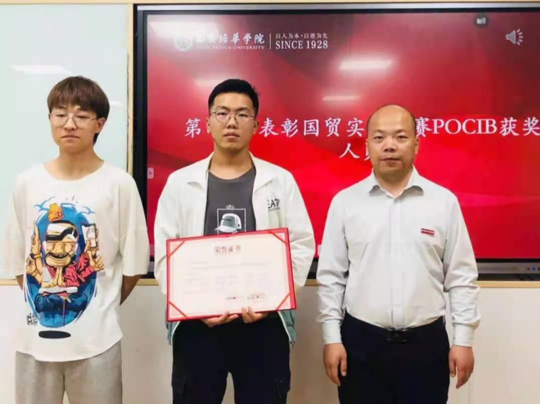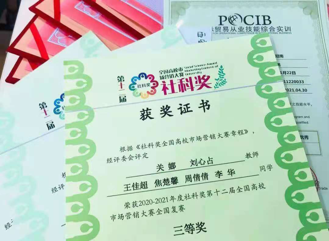 由会计与金融学院杨仕鹏院长、后勤服务中心张静远主任、环保干事全老师分别为获奖学生进行颁奖,以资鼓励。本次被表彰的赛事及学生包括:上半年获得全国高校市场营销大赛策划案三等奖的王博等同学;获得全国高校市场营销大赛策划案一等奖的安杨玲等同学;获得全国高校市场营销大赛全国复赛三等奖的王佳超等同学以及获得POCIB全国外贸从业能力大赛2020-2021赛季(春季赛)中荣获本科组团体三等奖的团队等。