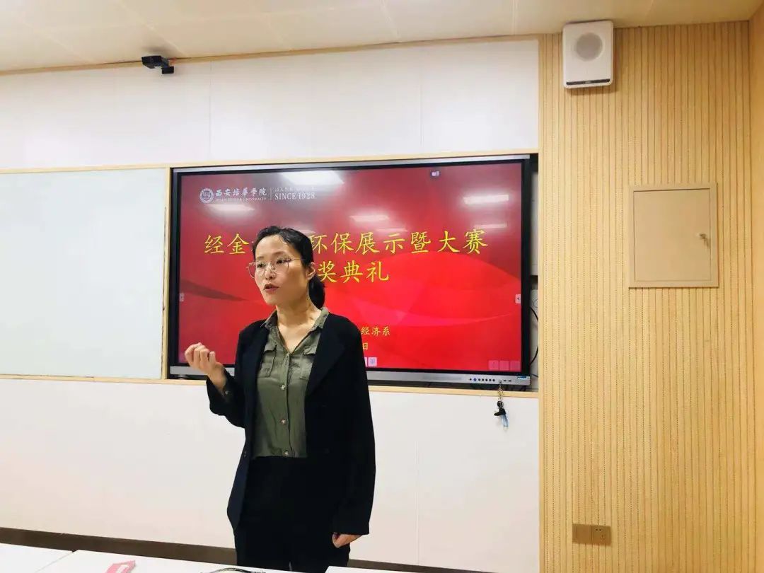 最后,经济系主任关娜老师对本次活动进行总结。关老师首先对前来参会的领导、老师以及同学们表示感谢,并希望同学们继续积极参加学科竞赛、树立环保意识,为环保事业贡献属于大学生们自己的力量。