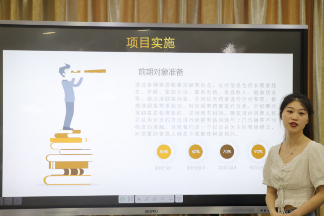6月5日-8日我院首先对参赛的316个项目进行资料评审,通过评选,共有95个项目进入院赛答辩环节。参赛项目涉及 “互联网+”现代农业、“互联网+”制造业、“互联网+”信息技术服务、“互联网+”文化创意等多个类型。在6月9日答辩赛中,各参赛项目的负责人以饱满的精神状态从团队介绍、项目PPT展示、现场答辩三个环节进行了汇报,最终院赛评选出“农产品可视化销售解决方案”、“达疆先中医药养生保健品牌策划方案”等35个优秀项目晋级校赛。