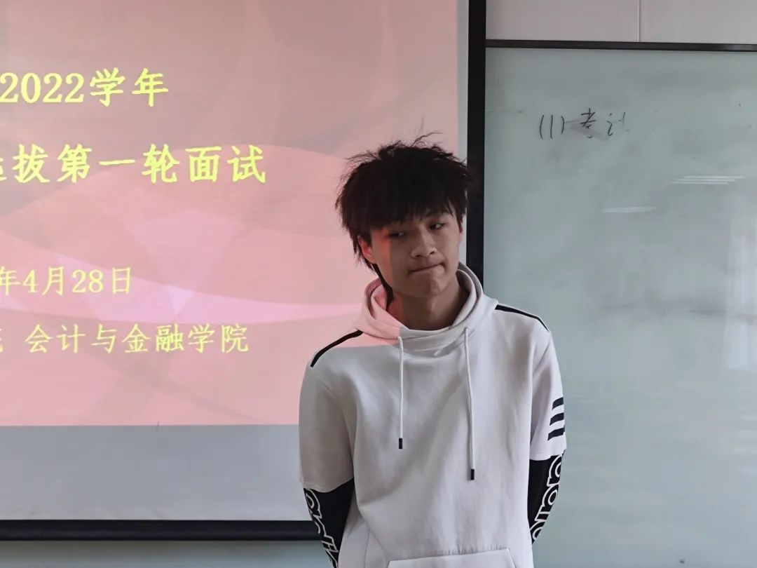 我院2021级班级学长选拔工作于3月20日正式启动第一阶段报名,共吸引19级、20级同学85人报名。74人成功进入第一轮面试。4月27—28日下午6:10在博远楼2516、2518、2519教室进行第一次面试,56人成功进入第二轮。