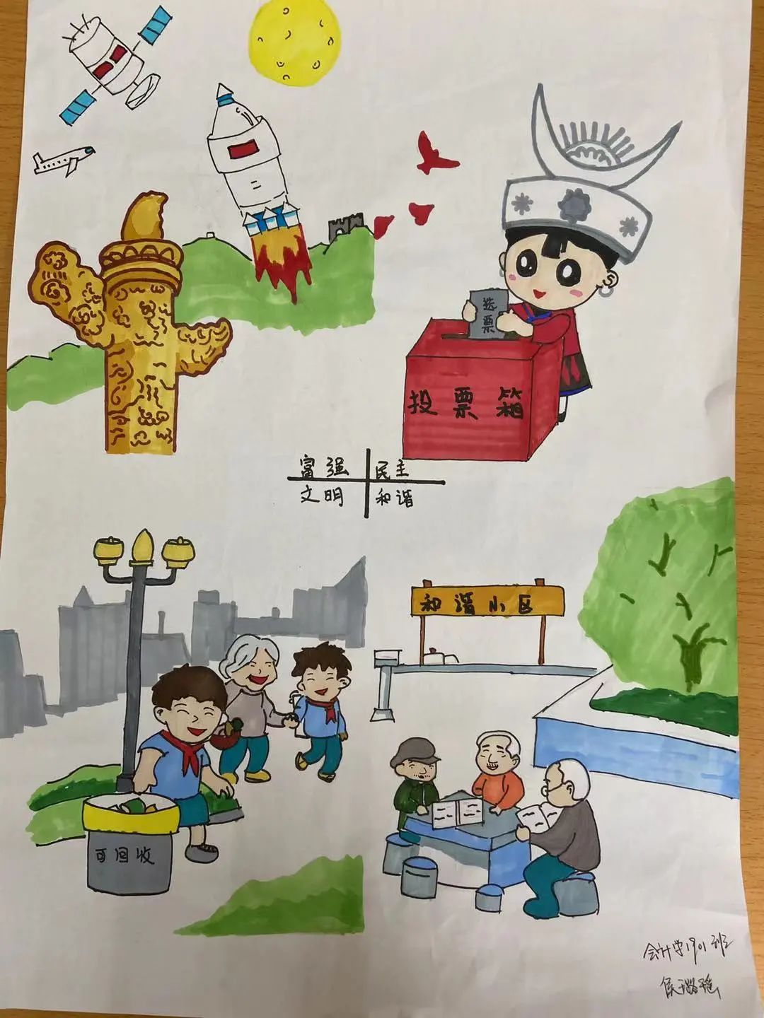 本次评选我们设立一等奖1名,二等奖2名,三等奖3名,优秀奖3名。在比赛中,以下作品因其主题鲜明、内容丰富、寓意深刻,能够通过绘画艺术载体等形式,将中华优秀传统文化与社会主义核心价值观有机结合等特点而突出重围。