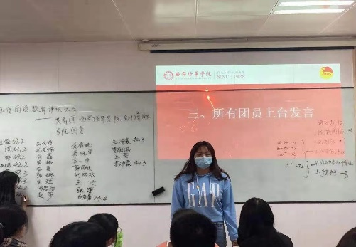 为了加强团员青年的思想政治教育工作,发挥好其先锋模范作用,树立典型、评选先进、推出模范,调动各支部和全体团员积极性,会计与金融学院团委于2021年4月21日16:30在2115会议室开展团支部和优秀团员评选,莅临此次大会的嘉宾有我院党委书记兼行政副院长史立军、团委书记唐璠、学生干事王迪,此次大会由大一干事张子璇主持。
