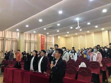特在此进行宣誓,请全体起立,请大家举起右拳。
