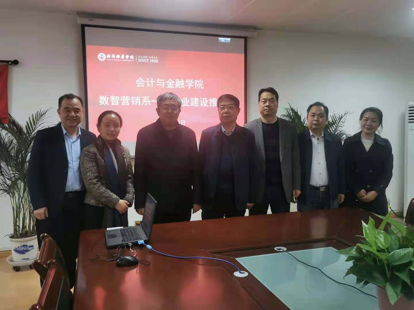 2021年4月7日16:00,会计与金融学院数智营销系在2115会议室召开一流专业建设推进会。会议邀请西安邮电大学产业经济研究所所长张鸿教授、西安交通大学城市学院应用经济系主任郭关科副教授参加,会计与金融学院赵选民院长、杨仕鹏副院长、孙文琳副院长和数智营销系全体教师参加了会议,会议由电子商务专业带头人丁阳副教授主持。