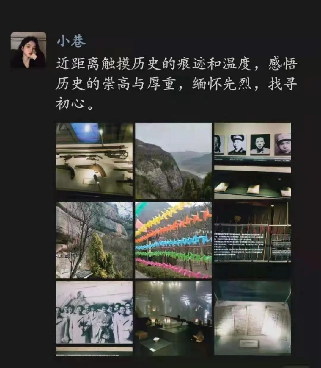 一个历史革命故事和一份沉甸甸真挚的情感在那一幅幅生动的画卷中再现,站在它们前边观看,无时不刻地体会到革命先辈们的不怕牺牲、顽强拼搏的英雄气概与独立自主、开拓进取的创新勇气,以及踏实的从实际出发密切联系群众的工作作风。