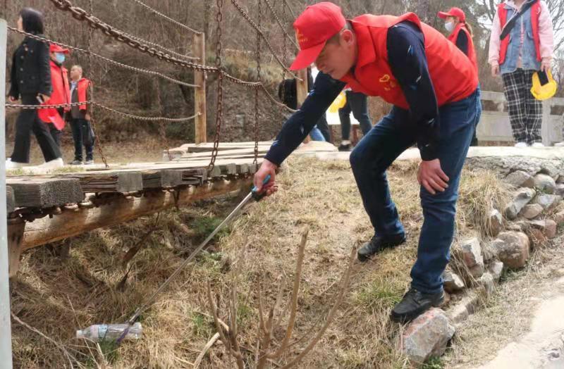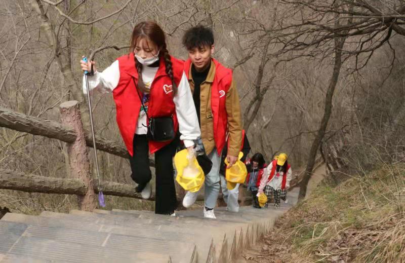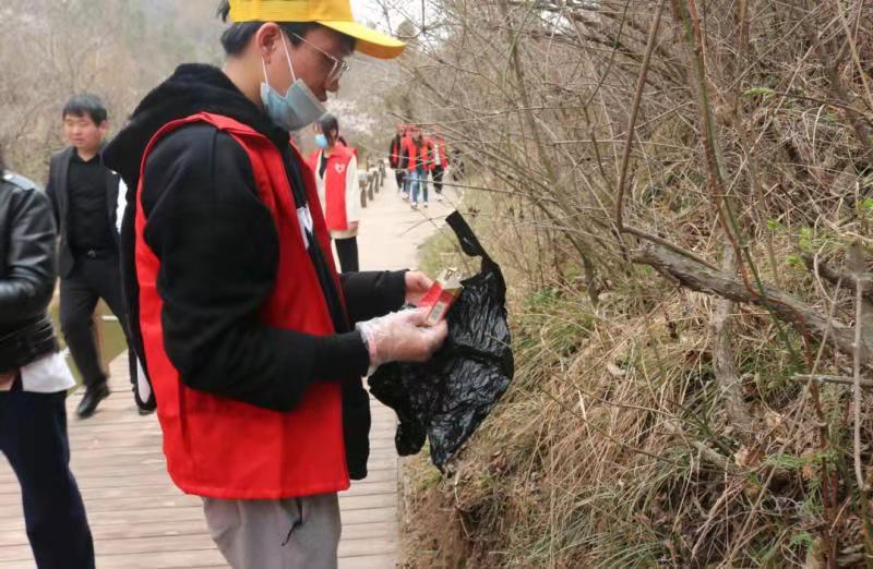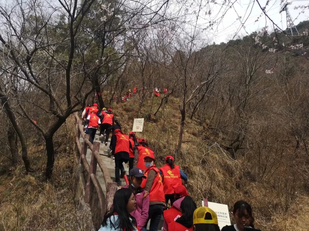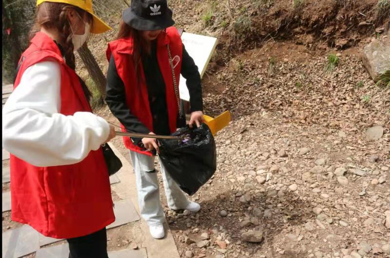正值雷锋月,爬山途中,我们还组织了师生和社区人员对小道旁的垃圾进行清理,党员同志们一手执垃圾钳,一手拎垃圾袋,认真地捡拾游客丢弃的烟蒂、碎纸屑、塑料袋、瓜皮果壳、生活垃圾等等。整个活动在融洽和谐的氛围中进行,所到之处道路、垃圾都被拾捡得干干净净,每个垃圾袋中都是“战果累累”。