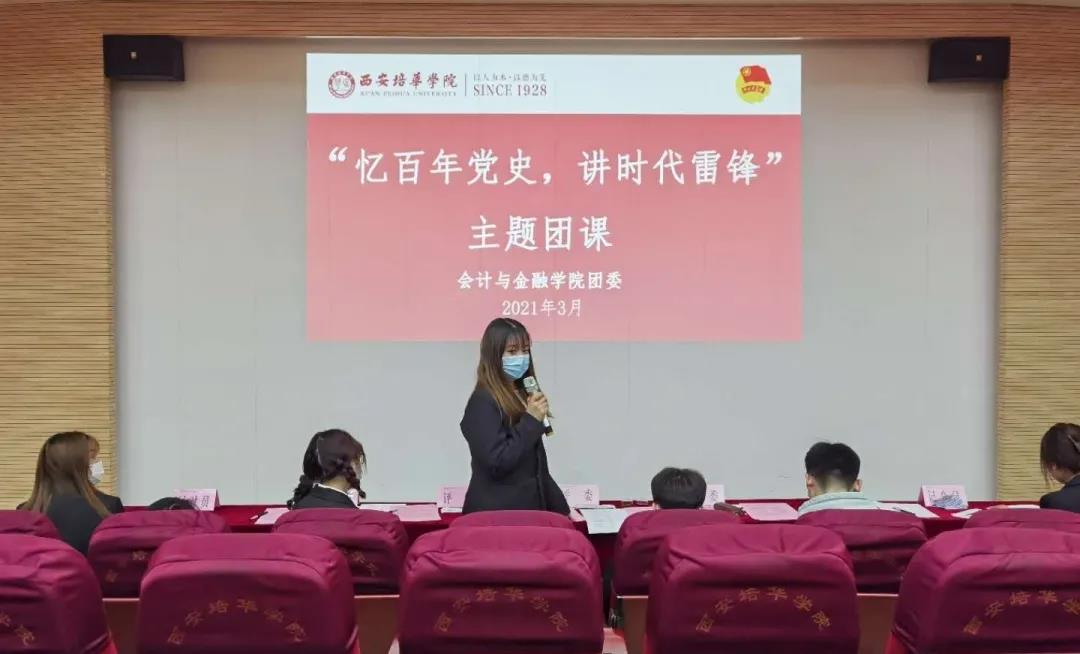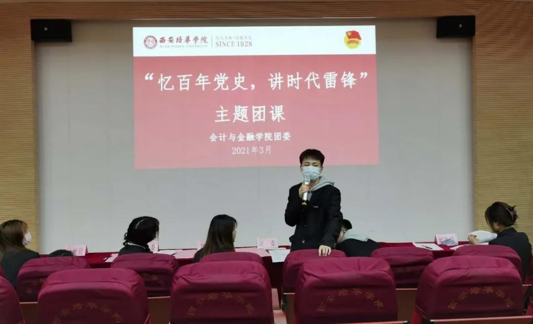 为了加强我院雷锋精神的教育,积极响应党的号召,将学党史与学雷锋高度结合,提高我院学生爱国意识及思想认识,让党的历史与雷锋精神在校园里散发出崭新的光芒,会计与金融学院团委于2021年3月19日12:20在博远楼J201教室、J202教室举办以“忆百年党史,讲时代雷锋”为主题的讲团课活动,参与本次会议的有我院团委学生兼职副书记全紫薇、科技实践委员肖晨睿、纪律委员王玥涵、宣传委员郝欣茹、心理委员范力、以及2020级、2019级、2018级团支书。