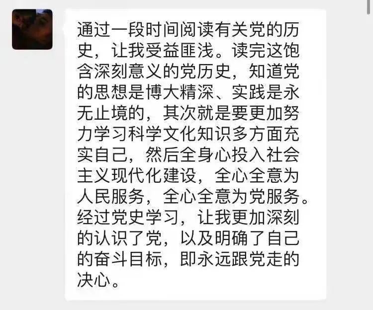 今年是中国共产党成立100周年,党中央决定在全党开展党史学习教育,习近平总书记也在党史学习教育动员大会上强调,全党同志要做到学史明理、学史增信、学史崇德、学史力行,学党史、悟思想、办实事、开新局,以昂扬姿态奋力开启全面建设社会主义现代化国家新征程,以优异成绩迎接建党一百周年,党史是门“必修课”,不仅要修,而且要修好,必须让学党史蔚然成风。学习党史应当成为每一名党员的自觉行动。揆诸现实,个别党员学党史不主动、不求甚解,往往是上级要求学就学,或者学习浅尝辄止,既不知其然,更不知其所以然,云里雾里。善于学习,就是普于进步。为此同学们积极参与并进行了线上学习。