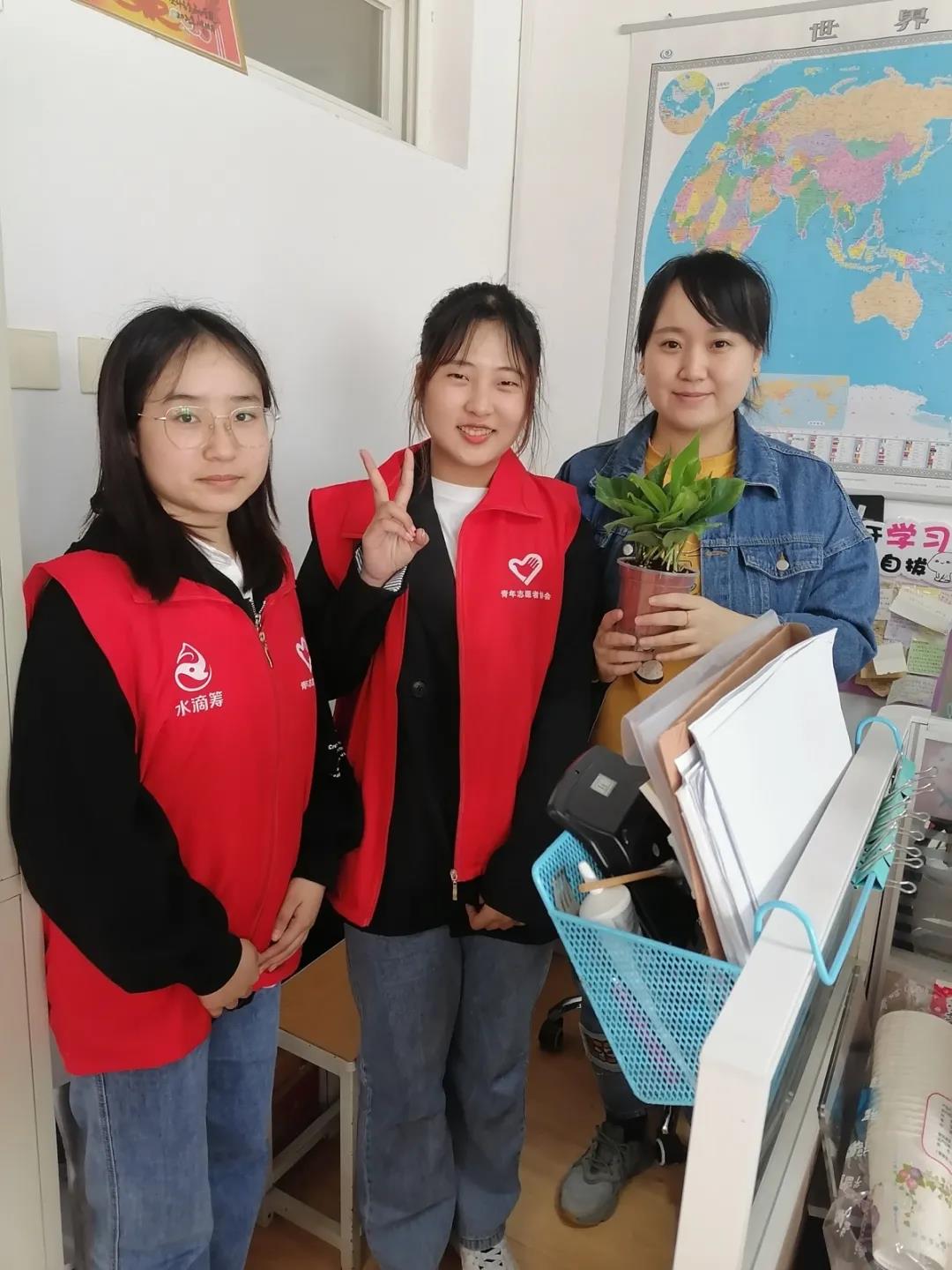 志愿者们将绿箩送给老师