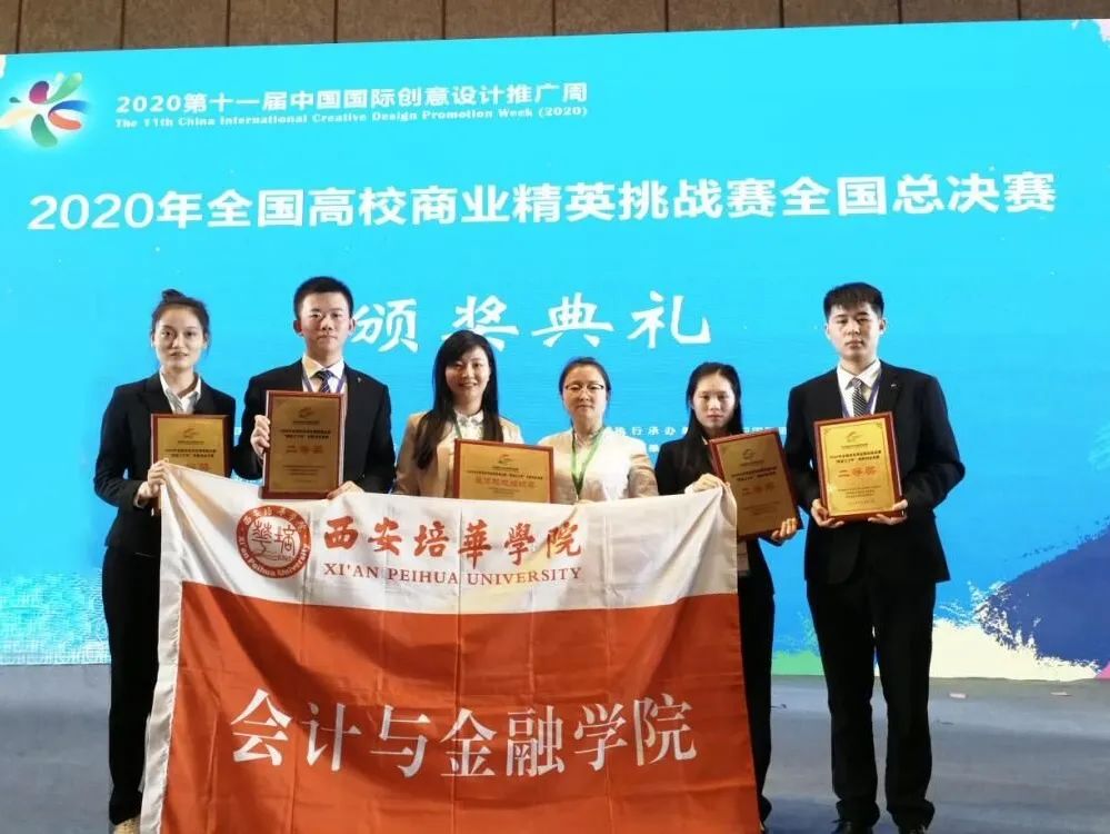 我院学子在全国高校商业精英挑战赛“颜值立方杯”创新创业竞赛中荣获全国一等奖三项、二等奖两项,西安培华学院会计与金融学院荣获最佳院校组织奖。