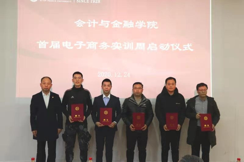 2020年12月24日下午16:00,会计与金融学院首期电子商务实训周启动仪式在博远楼J202教室召开。电子商务实训周是电子商务专业和陕西河酉电子商务有限公司联合开展的校企实训活动,以河酉公司主营产品为主,根据企业日常业务需求,通过企业导师和校内导师联合培养的模式,完成以电商主干课程为依托的实训活动,通过企业真实项目对学生所学专业课程进行综合实训,以提高学生实际应用能力。