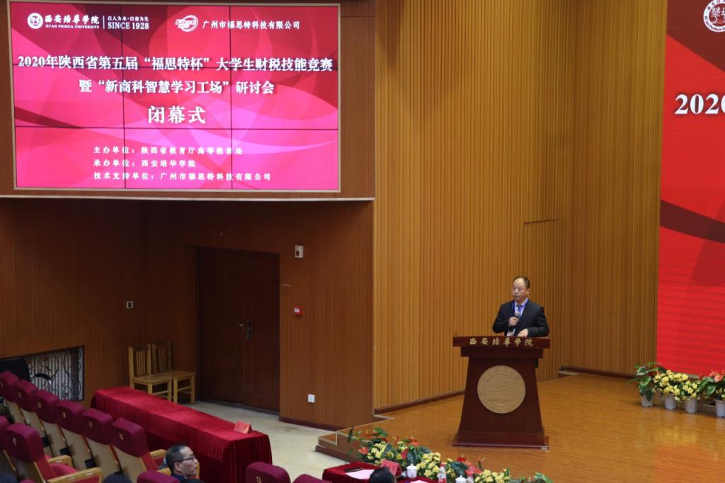 1月28日,2020年陕西省第五届“福思特杯”大学生财税技能竞赛暨“新商科智慧学习工场”研讨会在西安培华学院长安校区隆重举行。本次大赛由陕西省教育厅高等教育处主办、西安培华学院承办、广州市福思特科技有限公司提供技术支持。大赛面向陕西省各高校2020年全日制在校大学生、研究生,竞赛分本科组和研究生组。来自全省57支代表队,近400名师生参加。