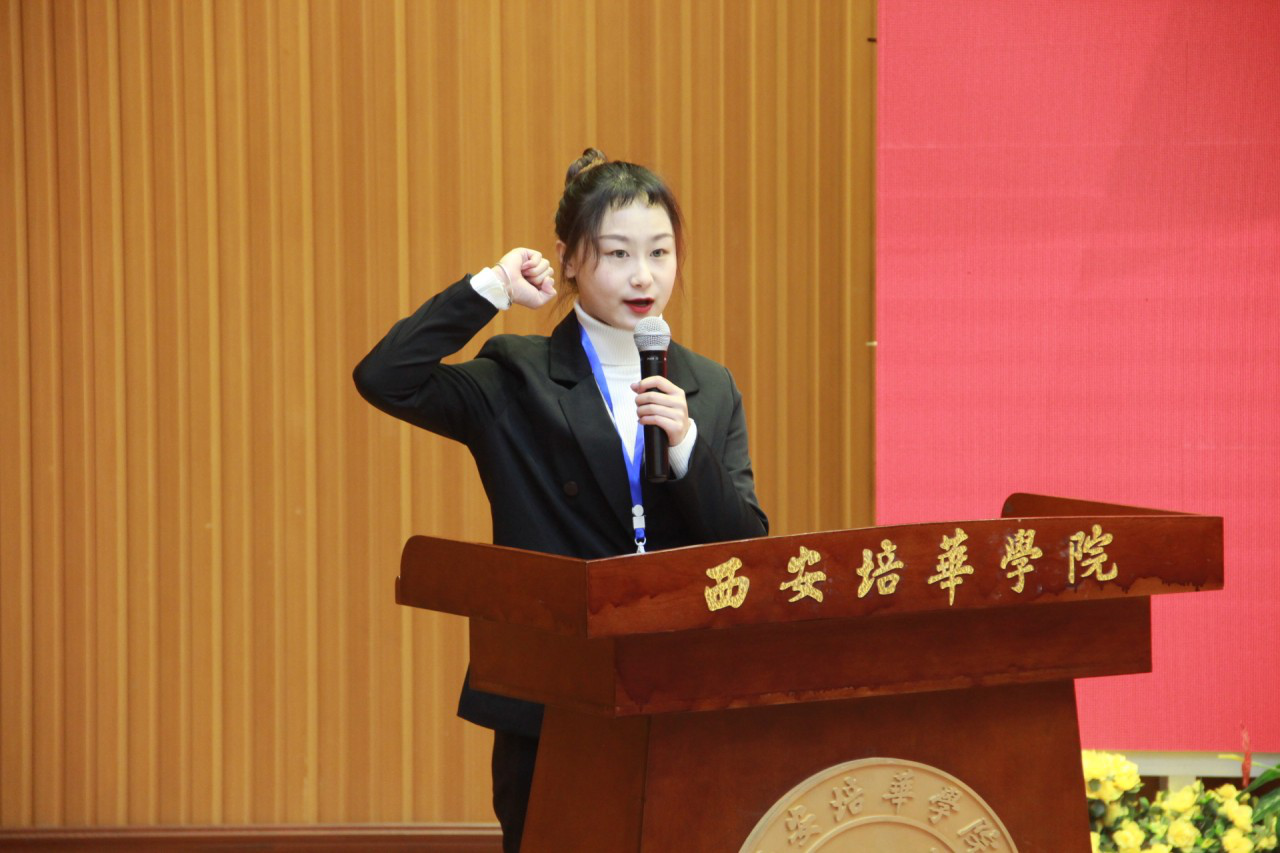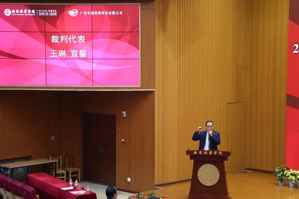 西安培华学院会计与金融学院会计系系主任王琳老师和财务管理专业和颜同学分别代表裁判员和参赛选手宣誓。