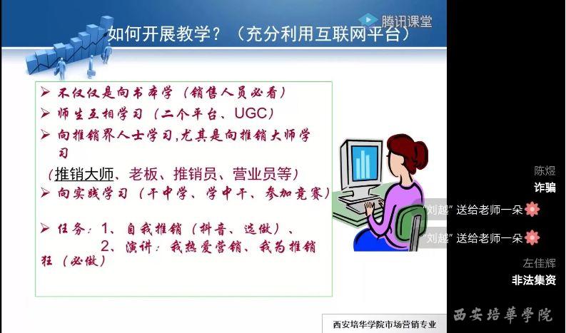 自开学以来,根据学校安排部署,本着“停课不停学”精神,市场营销专业全体师生开始全新的网络混合式教学,尝试不断创新的线上教学新手段。