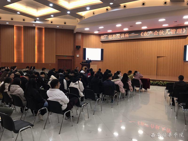2018年12月19日下午4点会计与金融学院市场营销专业全体师生在明德楼会议室听西安财经学院郁广建教授主讲的《农村合伙人管理》讲座。