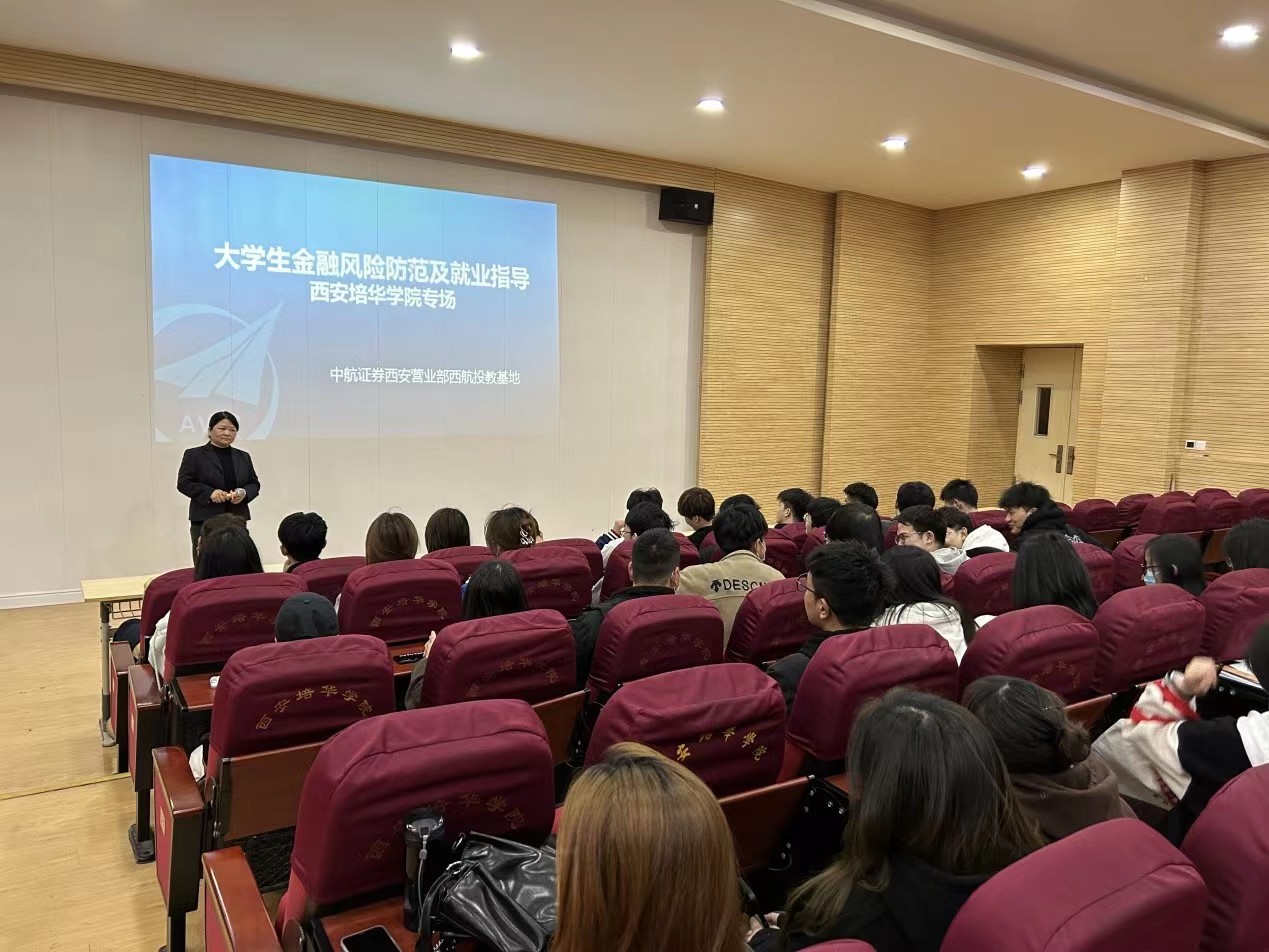 为有效提升我院大学生金融风险防范意识,增强大学生辨别校园金融诈骗的能力,全面引导在校大学生树立科学、理性、健康的消费观,并为大学生求职提供有效经验分享,2023年3月22日下午,经济系在博远楼J202教室举办了“金融风险防范与就业指导”的主题讲座,讲座邀请到中航证券西安营业部西航投教基地负责人张梦娜、刘祎两位老师。参加此次讲座的有金融工程专业全体学生及专业教师,本次讲座由经济系刘唯老师主持。