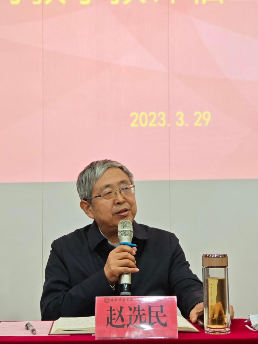 会议最后,赵选民院长就前期走访交流成果进行分享并对预评估重点工作进行总结讲话。他提出三点要求:一是要用机遇的眼光看待评估,充分认识评估的重要意义;二是要以积极的行动投入评估,周密做好迎评的各项工作;三是要以严格的标准迎接预评估,珍惜专家把脉问诊机会。全院上下要振奋精神,以时不我待的紧迫感、舍我其谁的责任感,以最佳的精神状态、最细致的工作作风、最良好的干事氛围,高质量完成此次预评估各项任务,为正式评估打一个漂亮的准备仗。