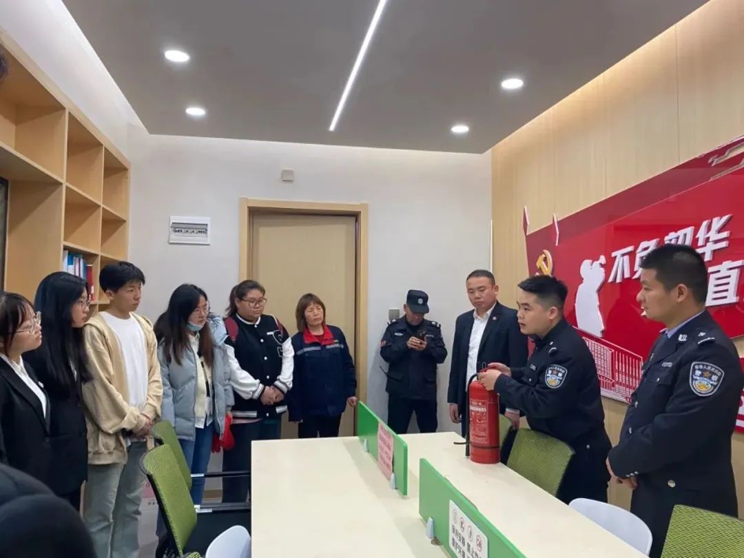 “一站式”社区安全主题教育活动结束后,两位警官与史立军副院长、刘斌副书记深入学生宿舍,向社区的公寓楼长、层长、驻楼老师及社区公寓管理员进行了防火安全教育和灭火器使用方法讲授。
