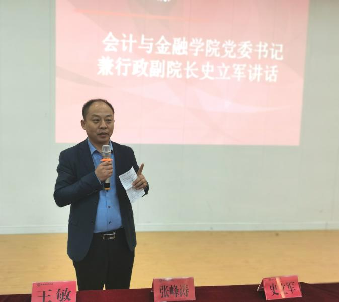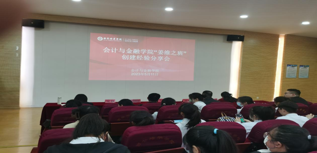 为深化五育并举,持续推进姜维之班创建进程,继“姜维之班”创建思想大讨论后,会计与金融学院于2023年5月11日12时在J202举行了2021-2022学年“姜维之班”创建经验分享会。本次经验分享会由学生干事王婷老师主持,参与本次大会的人员有,会计与金融学院党委书记兼行政副院长史立军,党委副书记刘斌,学生干事及相关创建班级辅导员和创建班级全体同学。