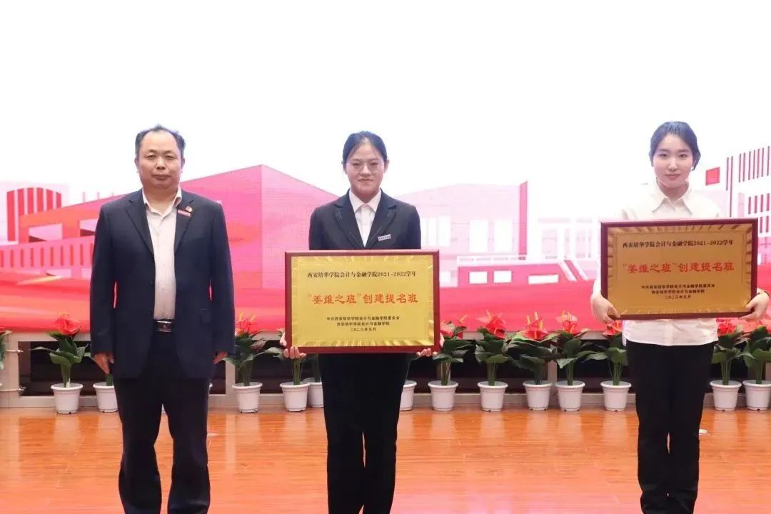 会计与金融学院副院长丁阳为获得“姜维之班”创建优秀班的班级颁奖