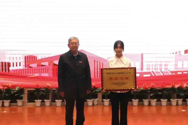 会计与金融学院院长赵选民为获得会计与金融学院“姜维之班”班级颁奖