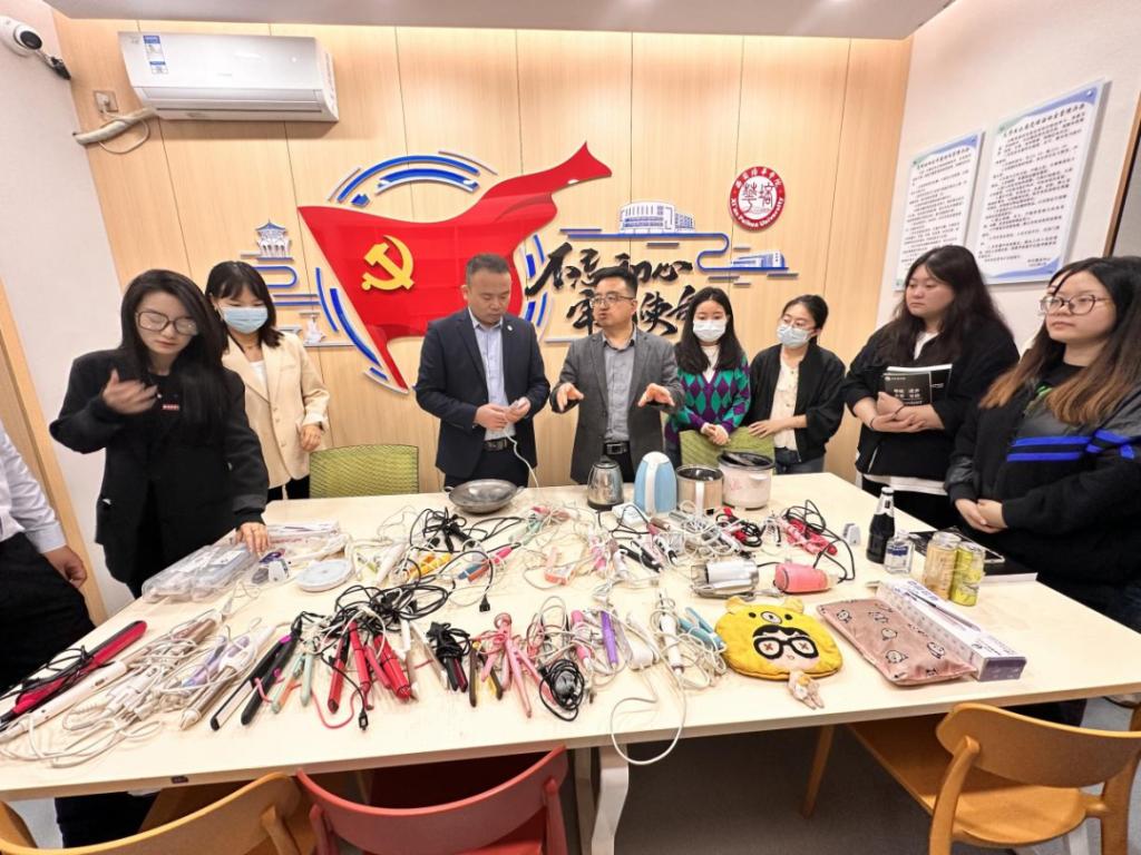 展览分别在我院社区的四栋公寓举行,展览现场驻楼老师分享了高校宿舍因使用违禁电器导致发生火灾的案例,宣讲学生手册中对于使用、存放违规电器和违禁品的处理办法,认真解答了现场学生提出的问题,同学们纷纷表示,这样“零距离”参观,印象更为深刻,更加能明确规范使用电器和安全用电,为社区安全和稳定提供了重要的参考依据。