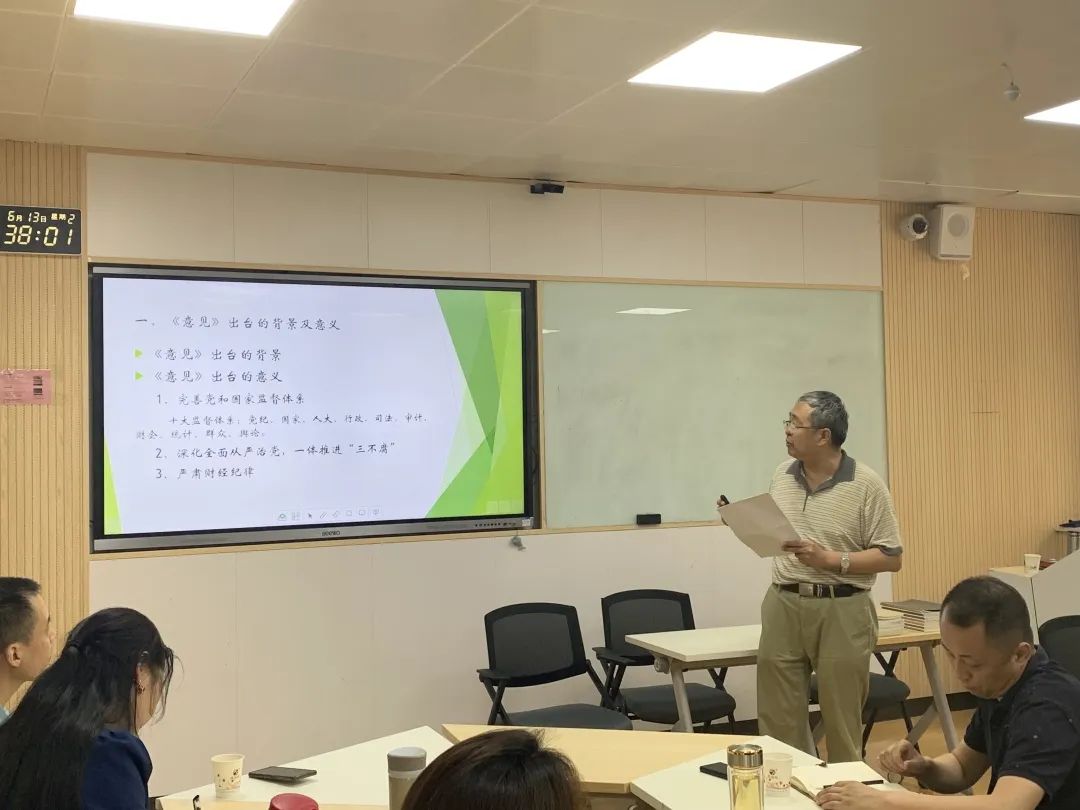 教学科研沙龙活动开始,首先由会计与金融学院院长赵选民教授做了主题为“加强财务会计监督,助力经济高质量发展”的分享,对于中共中央办公厅和国务院办公厅最新印发的《关于进一步加强财会监督工作的意见》从《意见》出台的背景及意义、财会监督的内涵、指导思想、主要目标、工作原则、健全财会监督体系等几个方面进行了解读。赵选民教授倡导教师们结合自身实际,学习宣传贯彻落实《意见》,真正在学懂弄通做实上下功夫,将《意见》精神融入到教育教学当中去,充分发挥教育在提升财会监督效能当中的作用,促进财会监督工作高质量发展。