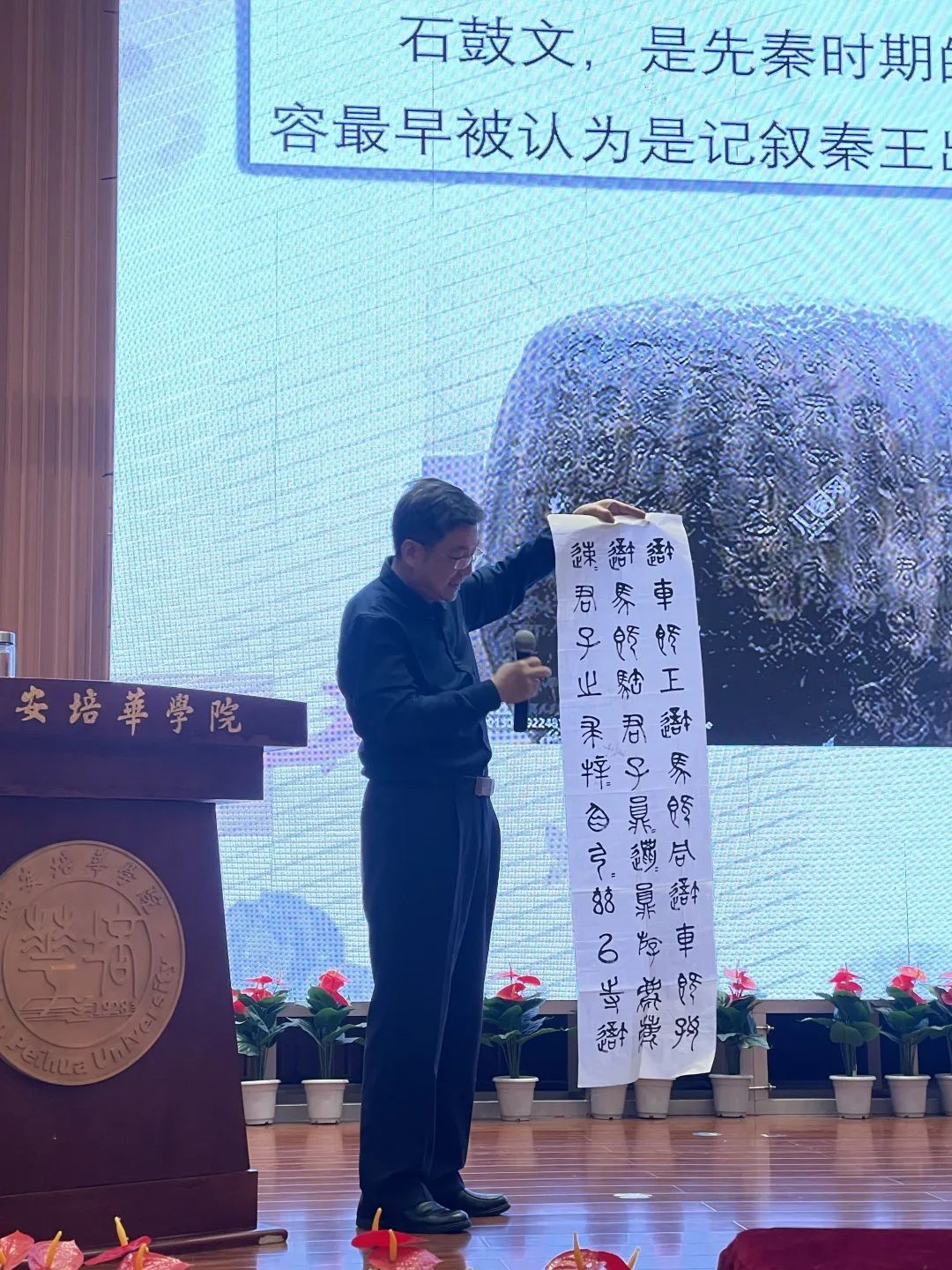 为弘扬传统文化、凝聚正能量,2023年6月6日,在维之图书馆学术报告厅,会计与金融学院邀请西安培华学院金融文化研究院研究员、中国金融文化西北交流中心艺术导师、著名书法家王春峰来我校进行以《从书法角度看汉字演变》为主题的讲座,本次讲座由会计与金融学院院长赵选民主持,面向西安培华学院全体师生,旨在更好激发师生的创造力、想象力和观察力,助推学习传统文化成效向纵深发展。