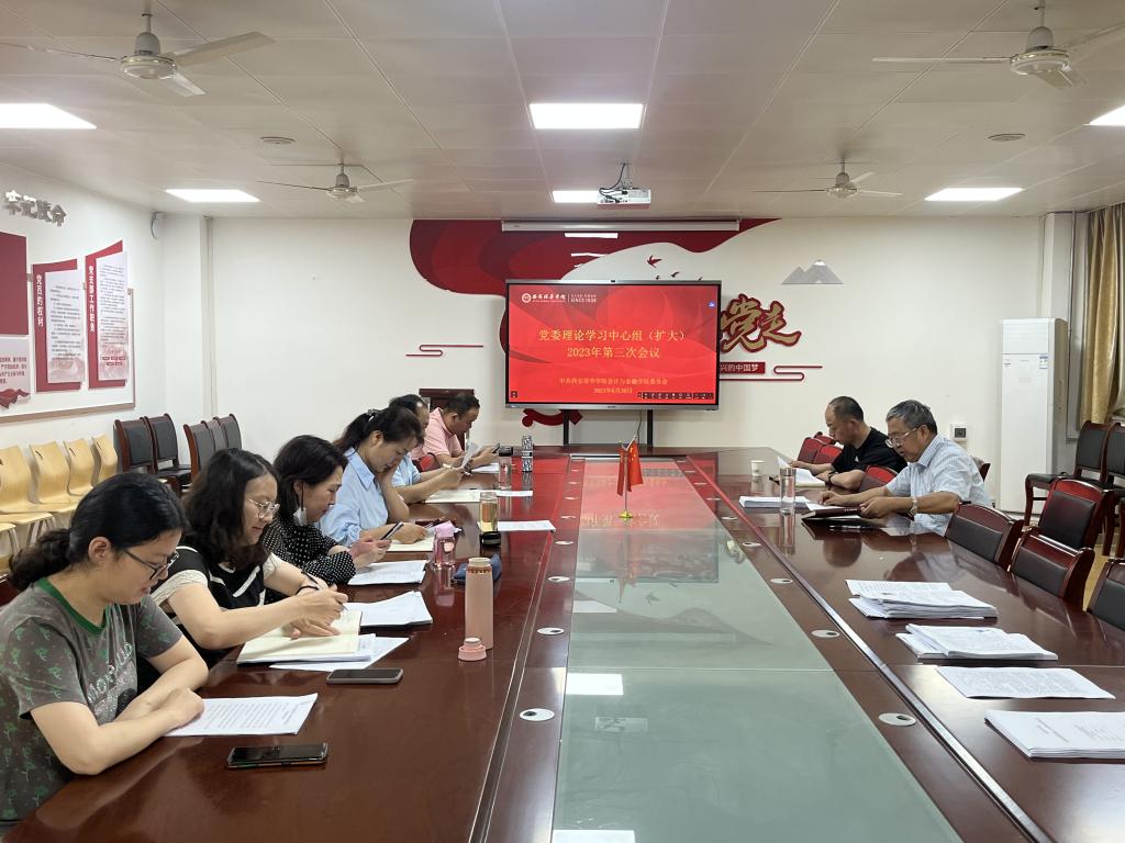 2023年5月30日,会计与金融学院党委在博远楼2115会议室集中组织召开学院党委中心组理论学习(扩大)会议,学习习近平著作,把学习宣传贯彻习近平新时代中国特色社会主义思想和党的二十大精神引向深入,引导广大党员干部更加深刻领悟“两个确立”的决定性意义,增强“四个意识”、坚定“四个自信”、做到“两个维护”。