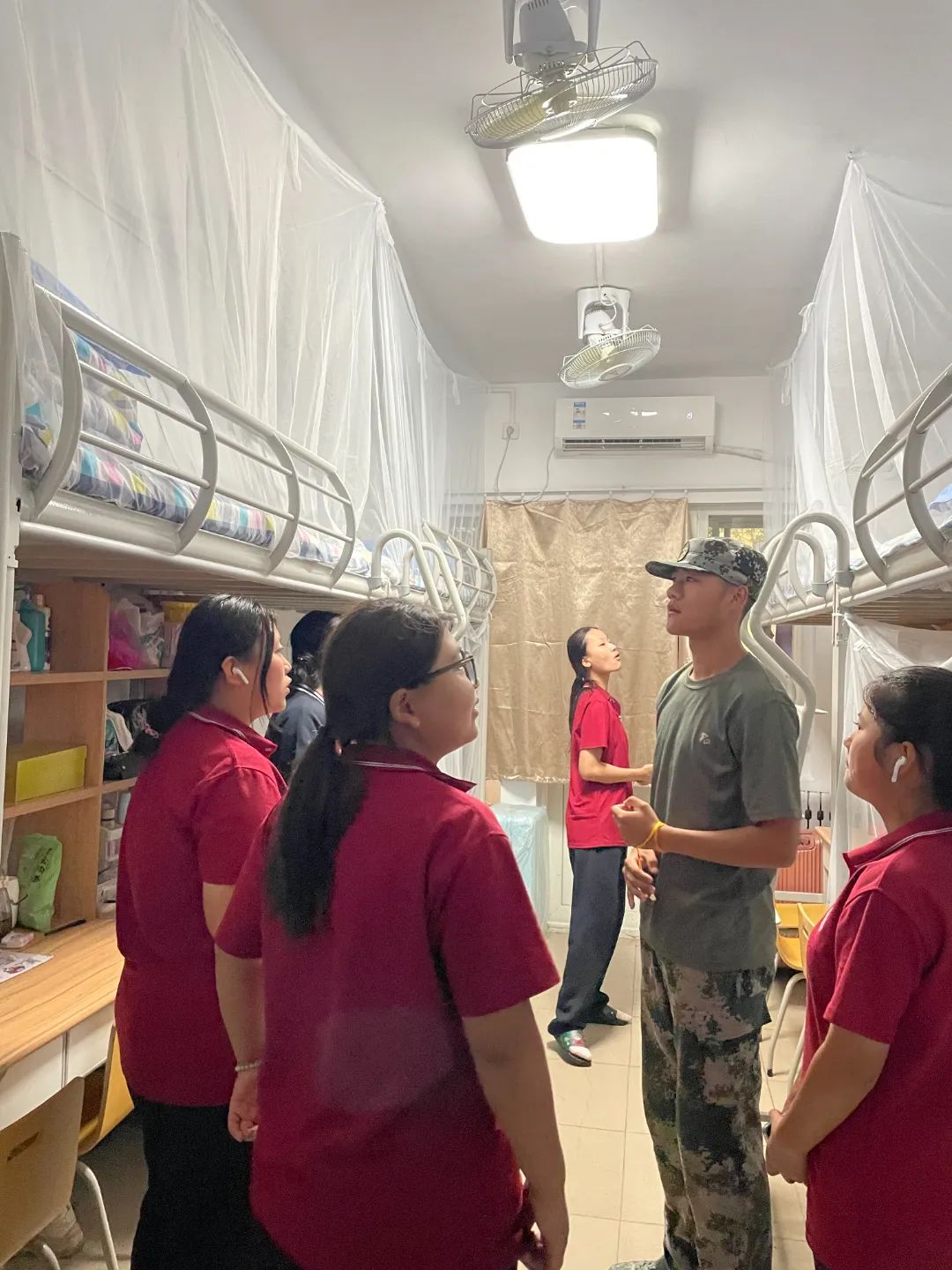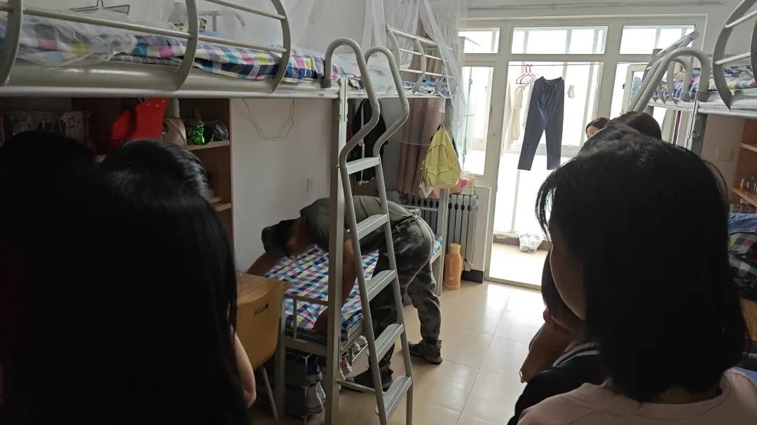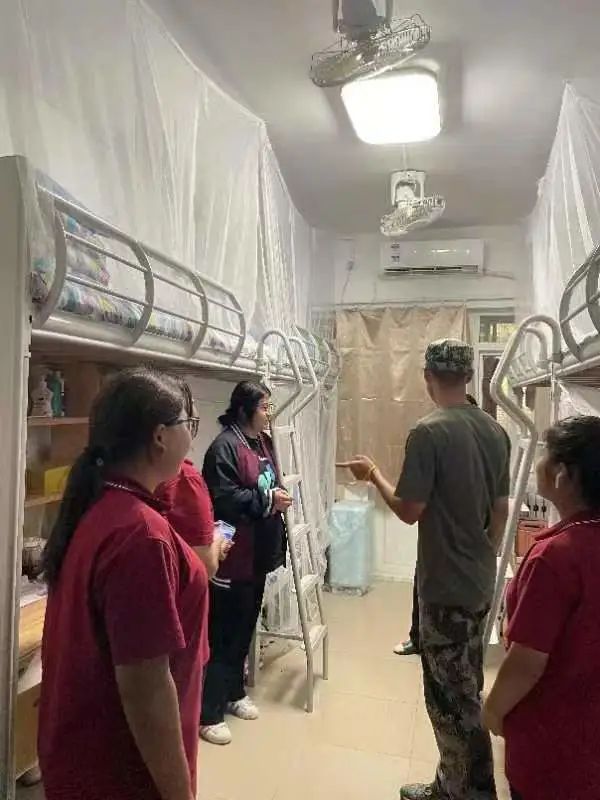 在查寝过程中,教官和新生辅导员深入学生宿舍,认真检查每位学生的被子叠放是否整齐、衣物摆放是否有序,以及个人卫生是否得到保障。对床铺整理、桌面归置、墙面死角等进行了全方面检查。教官和新生辅导员对宿舍干净整洁和物品摆放整齐有序的宿舍提出了表扬,同时也对有问题的宿舍提出整改意见,并要求重新学习内务整理方法和技巧,再次认真对宿舍进行清扫和整理。