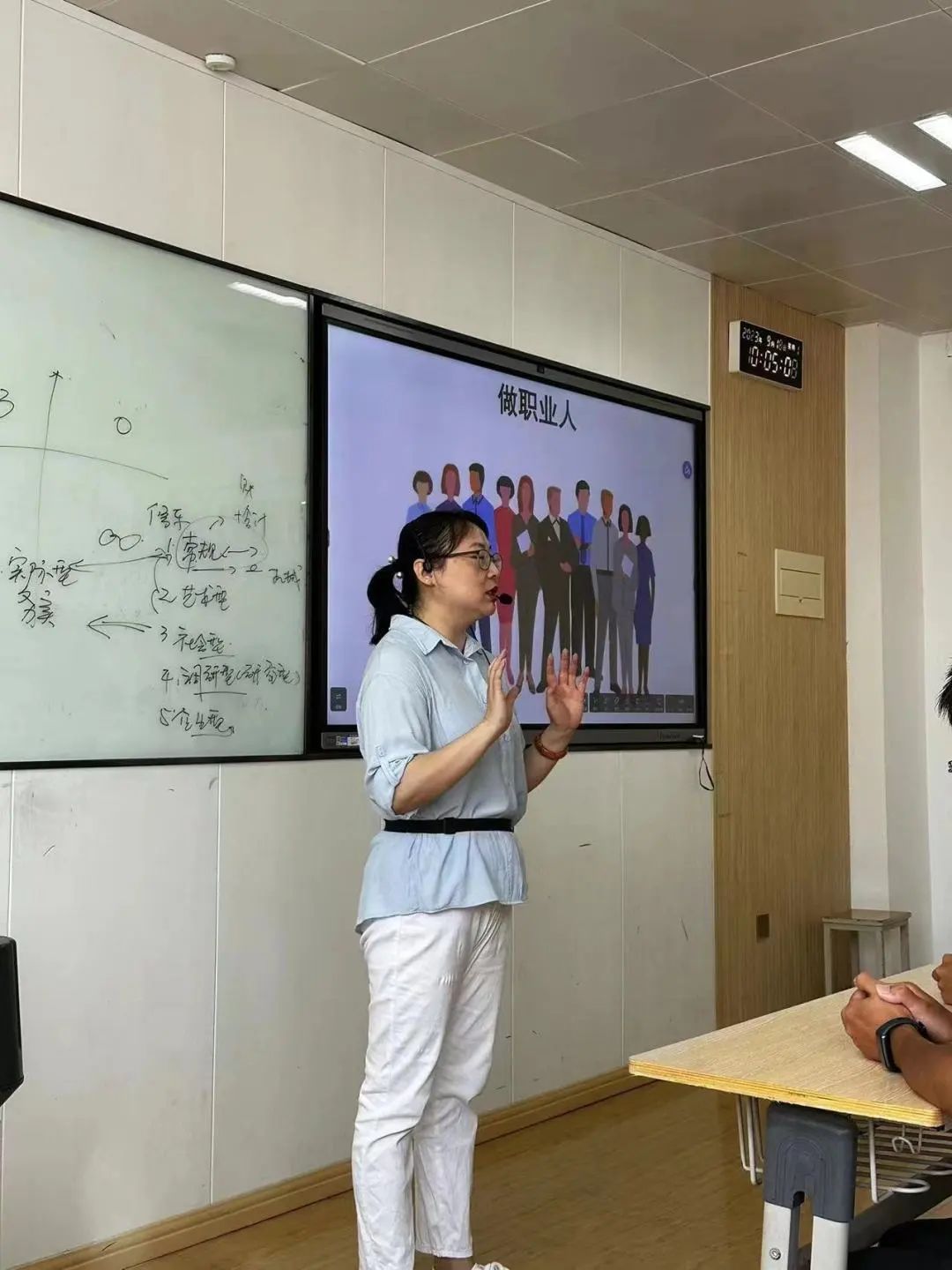 最后,人力资源管理专业系部老师王芳,张婉金,谷萍与人力资源管理2301班全体同学进行师生见面,老师们提出,大学是你们人生旅途新的起点,能够为同学们提供平台,重实际,重实践,认真学习专业知识,找准职业定位,在未来的职场中实现自己的精彩,成就更好的自己!