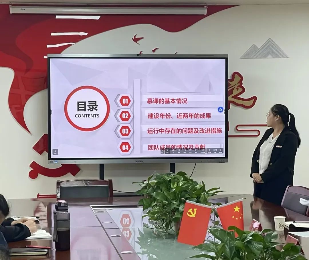 会议伊始,由各课程负责人进行课程结项汇报,并在线播放慕课,本次评审会8门课程申请结项。
