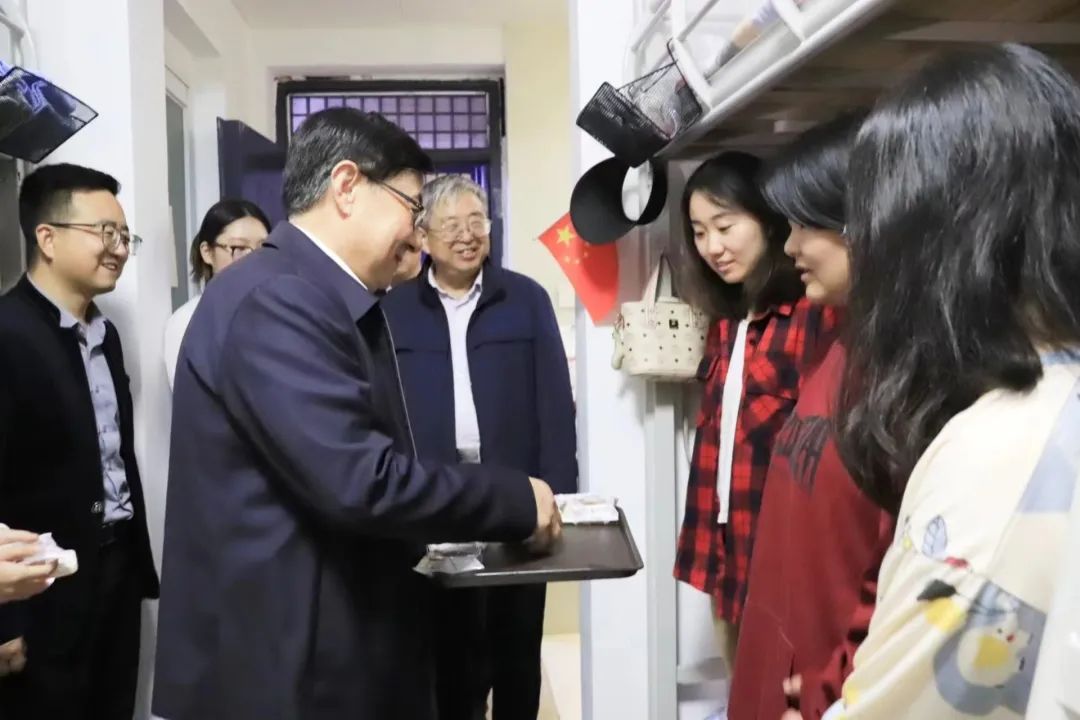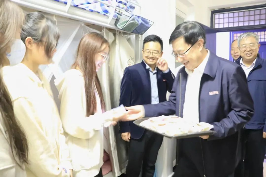 李映方校长亲自为学生分发月饼,共话中秋团圆之喜乐。
