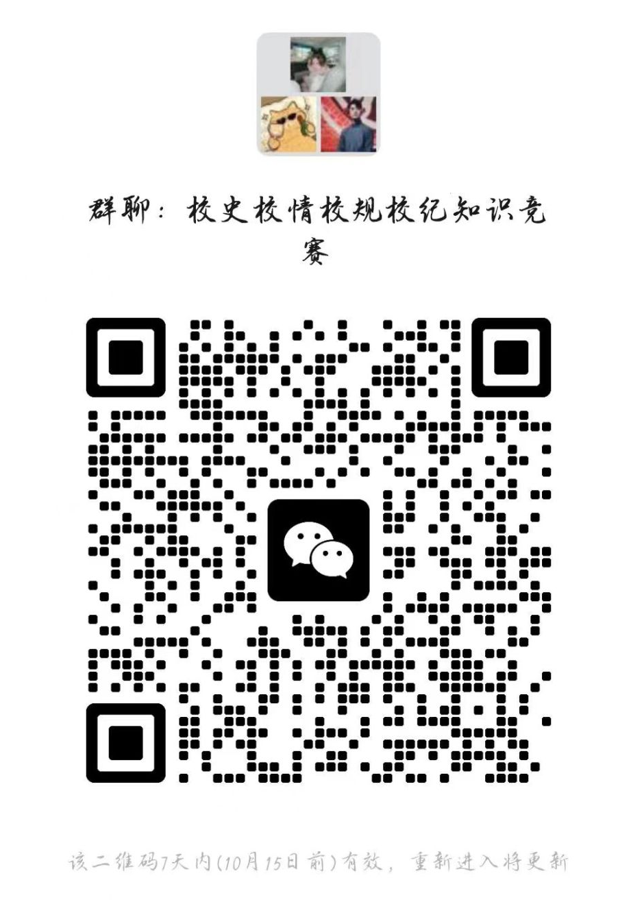 校史知识竞赛以团队形式报名参加,每支队伍最多四人;《学生手册》要点考察、传承维之精神分享会以个人形式参加。前三场活动参加完才有资格参加总结表彰大会,请各位同学认真对待,有意向的进群了解,活动有丰厚的奖品哦!同学们可以借此机会学习到更多的知识,提升自己,2023届同学们可以扫描二维码积极报名参加哦,使自己的大学生活更加丰富多彩!