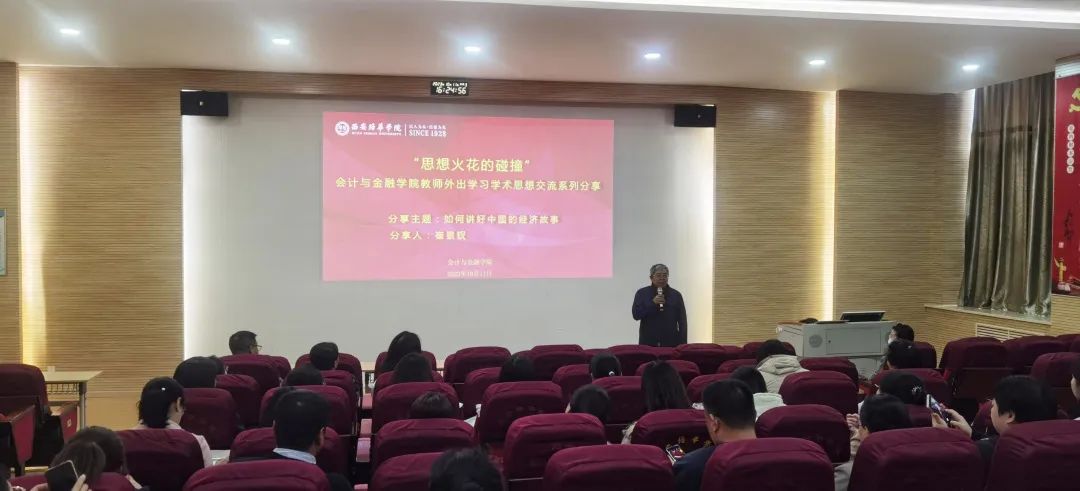 10月11日下午,由会计金融学院组织的第一期“思想火花的碰撞”——会计与金融学院教师外出学习学术思想交流会在博远楼J201阶梯教室成功举办,本期分享活动由学院教学干事夏金老师主持,经济系崔景钗、华慧婷两位教师分别进行了分享。全院70余名教师参加了本次分享。