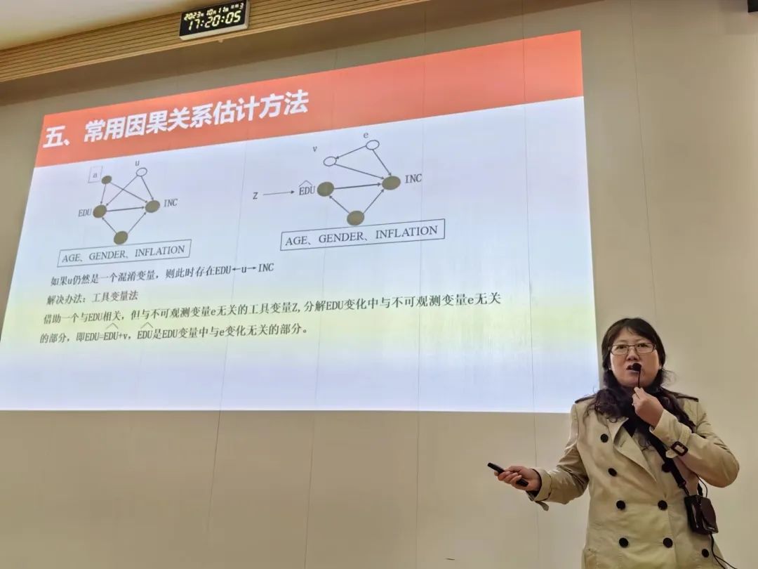 华慧婷老师分享的主题是《因果推断的实证计量:理论与应用》。她通过自身对“因果识别为计量核心课程”的培训学习,结合Stata软件和经典文献的具体例子,讲解每一种因果识别方法的具体操作流程和注意要点。对高校老师的论文写作和实证研究有一定的借鉴意义。