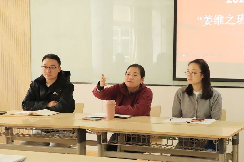 校团委书记杨媛与学生代表进行座谈。她强调,“姜维之班”创建的数据还需要深入分析,切实解决学生在学习中遇到的困难,将创建工作落到实处。
