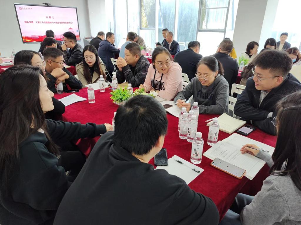 沙龙第二项,讨论发言环节,在此环节中,主持人通过分享三个视频,分别抛出了后疫情时代00后学生的特点,姜维之班创建中针对学风建设都遇到了哪些难点,以及以创建姜维之班为基础如何增加学业导师与学生之间的黏性等问题,各位辅导员老师结合各自院系的实际情况,围绕抛出的问题认真讨论,并踊跃发表自己的看法,现场氛围热烈。