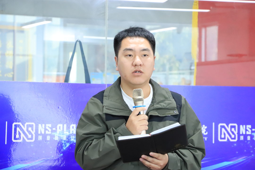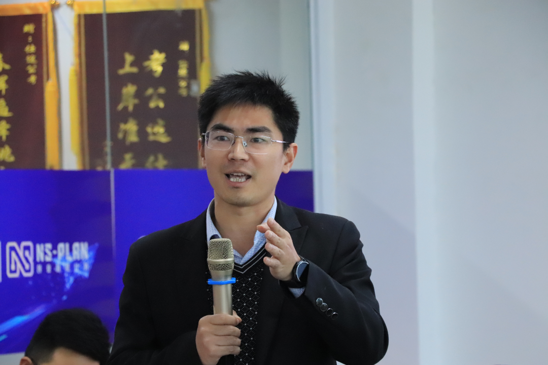 沙龙第三项,学业导师发言,张哲老师作为学业导师代表发言,通过从不同角度、不同维度、不同时间几个方面对学生与老师之间的关系,以及学风建设发展过程,进行了讲解,最后他表示“不是每一个学生都能成才,但我们会用尽全力使每一位学生都成人”。